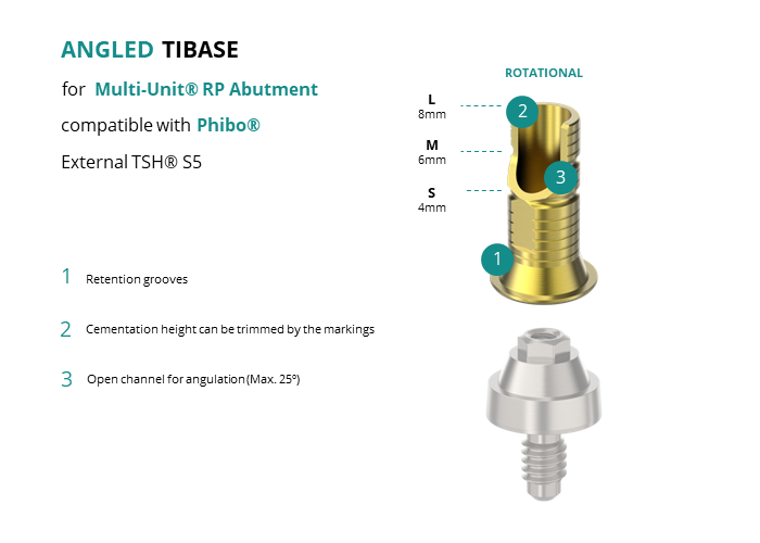 Angled Titanium Base for Multi-Unit® RP Abutment compatible with Phibo® External TSH® S5