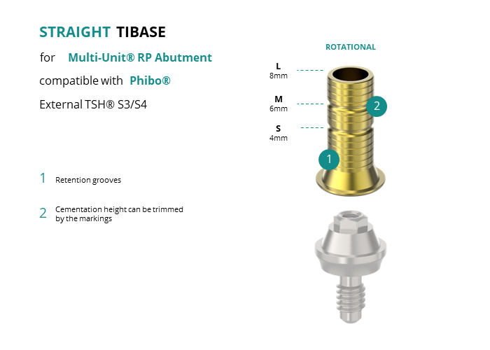 Titanium Straight Base for Multi-Unit® RP Abutment compatible with Phibo® External TSH® S3/S4