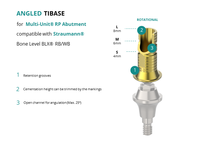 Angled Titanium Base for Multi-Unit® RP Abutment compatible with Straumann® Bone Level BLX® RB/WB