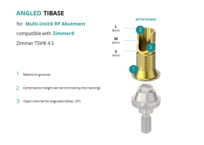 Angled Titanium Base for Multi-Unit® RP Abutment compatible with Zimmer® Zimmer TSV® 4.5