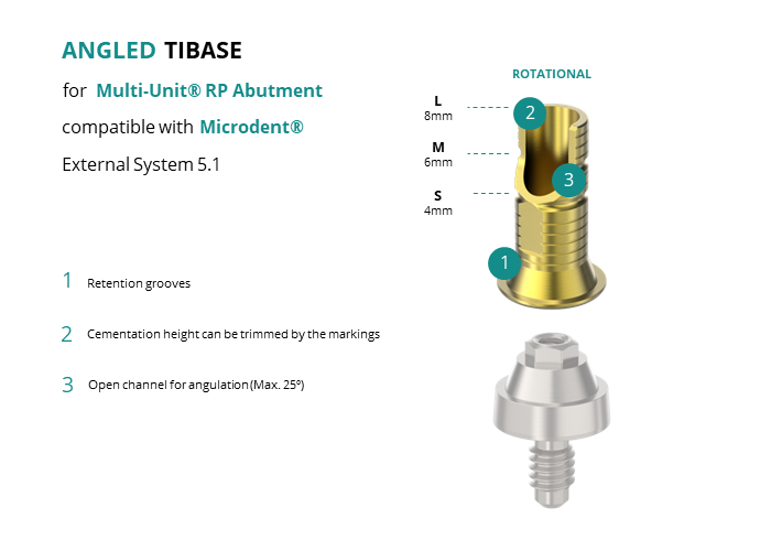 Angled Titanium Base for Multi-Unit® RP Abutment compatible with Microdent® External System 5.1