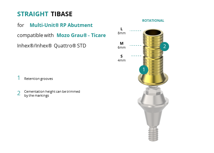 Titanium Straight Base for Multi-Unit® RP Abutment compatible with Mozo Grau® - Ticare Inhex®/Inhex® Quattro® STD