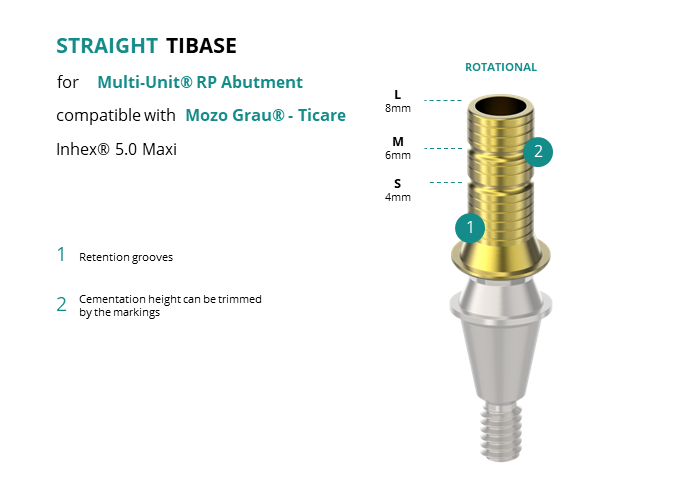 Titanium Straight Base for Multi-Unit® RP Abutment compatible with Mozo Grau® - Ticare Inhex® 5.0 Maxi