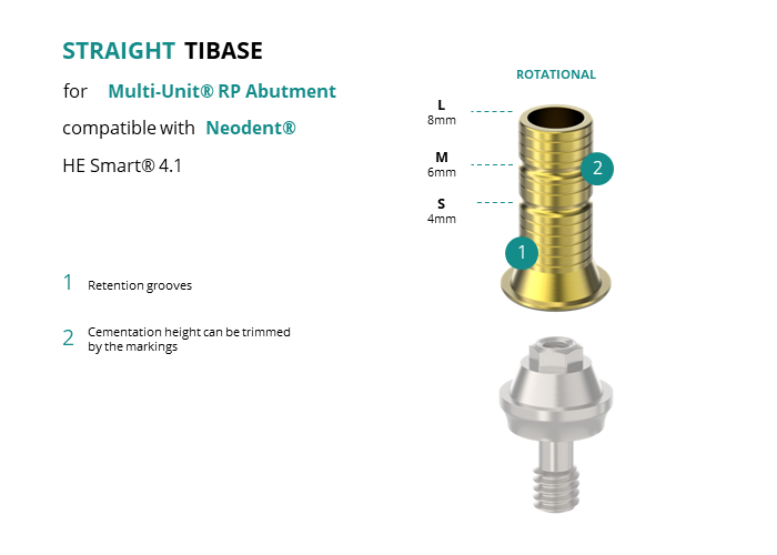 Titanium Straight Base for Multi-Unit® RP Abutment compatible with Neodent® HE Smart® 4.1