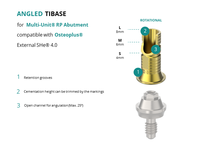 Angled Titanium Base for Multi-Unit® RP Abutment compatible with Osteoplus® External SHe® 4.0