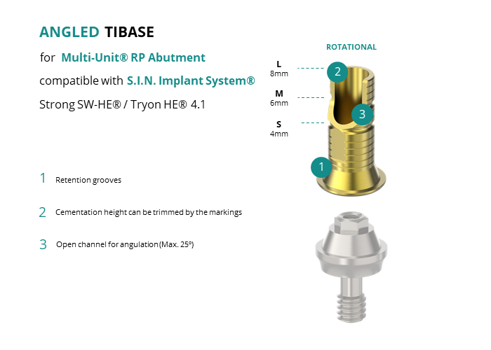 Angled Titanium Base for Multi-Unit® RP Abutment compatible with S.I.N. Implant System® Strong SW-HE® / Tryon HE® 4.1