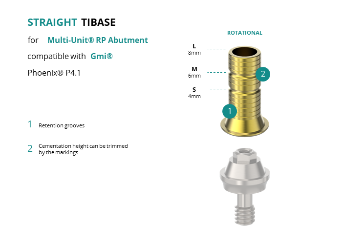 Titanium Straight Base for Multi-Unit® RP Abutment compatible with Gmi® Phoenix® P4.1