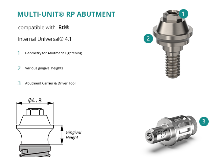 Multi-Unit® RP Abutment compatible with Bti® Internal Universal® 4.1