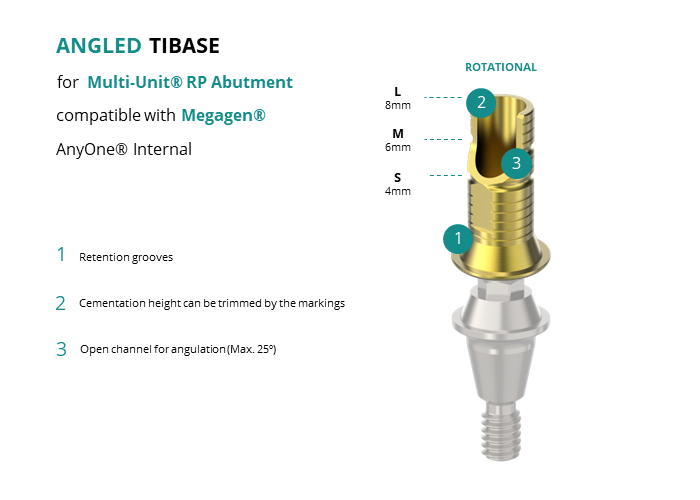 Angled Titanium Base for Multi-Unit® RP Abutment compatible with Megagen® AnyOne® Internal