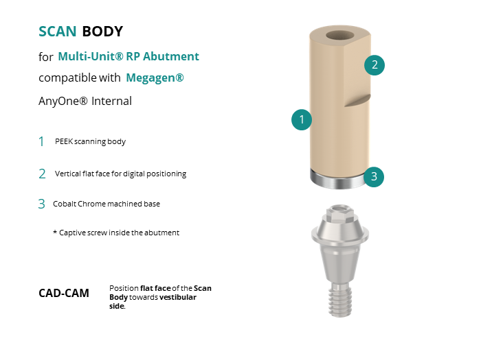 - CAD-CAM: Position flat face of the Scan Body towards vestibular side.