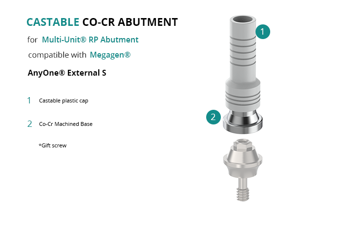 Castable Abutment with Co-Cr Base for Multi-Unit® RP Abutment compatible with Megagen® AnyOne® External S