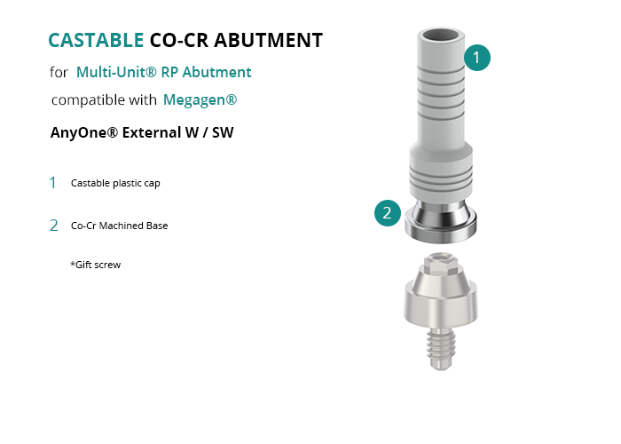 Castable Abutment with Co-Cr Base for Multi-Unit® RP Abutment compatible with Megagen® AnyOne® External W / SW