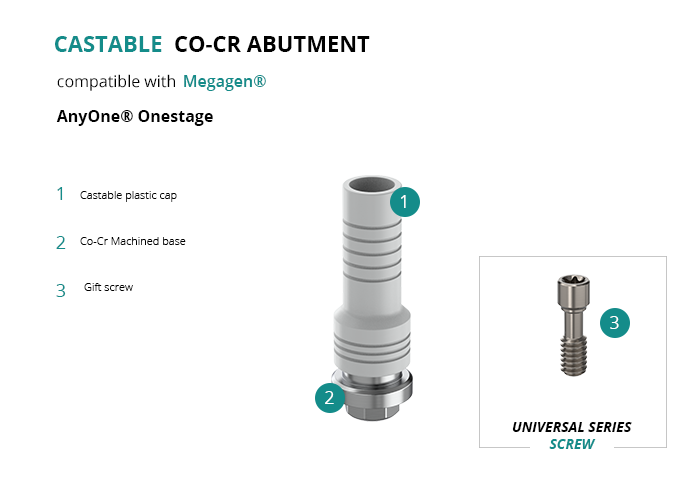 Castable Abutment with Co-Cr Base compatible with Megagen® AnyOne® Onestage