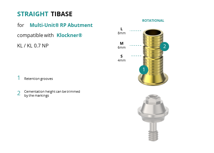 Titanium Straight Base for Multi-Unit® RP Abutment compatible with Klockner® KL / KL 0.7 NP