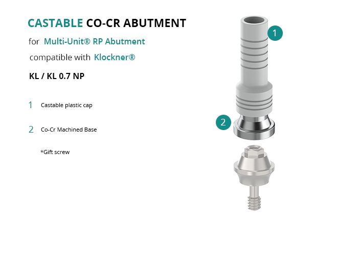 Castable Abutment with Co-Cr Base for Multi-Unit® RP Abutment compatible with Klockner® KL / KL 0.7 NP