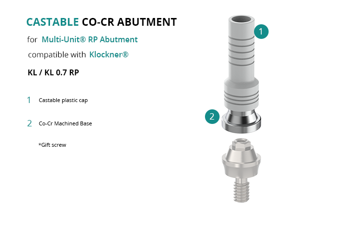 Castable Abutment with Co-Cr Base for Multi-Unit® RP Abutment compatible with Klockner® KL / KL 0.7 RP