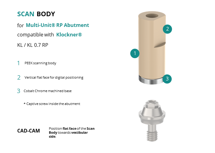 Scan Body for Multi-Unit® RP Abutment compatible with Klockner® KL / KL 0.7 RP