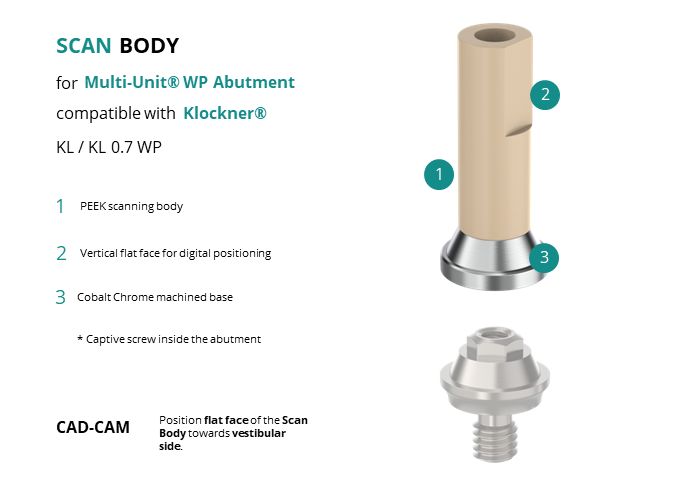 Scan Body for Multi-Unit® WP Abutment compatible with Klockner® KL / KL 0.7 WP