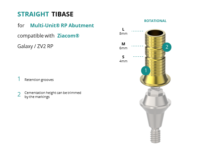 Titanium Straight Base for Multi-Unit® RP Abutment compatible with Ziacom® Galaxy / ZV2 RP