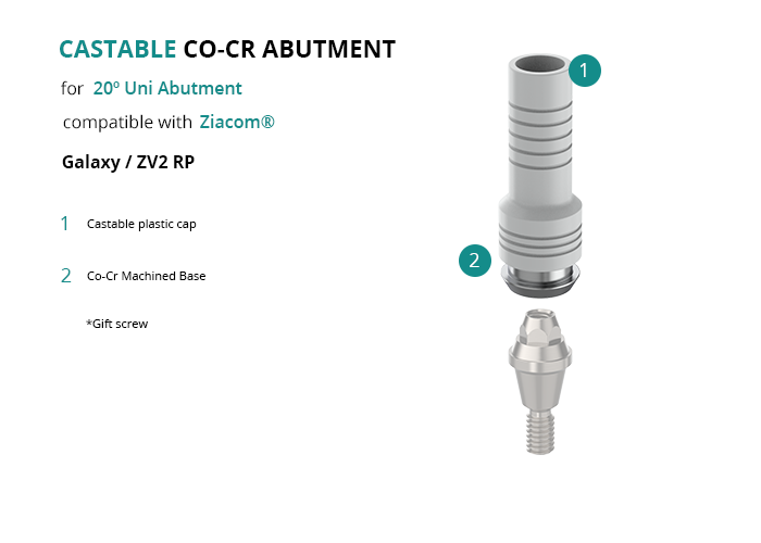 Castable Abutment with Co-Cr Base for 20º Uni Abutment compatible with Ziacom® Galaxy / ZV2 RP