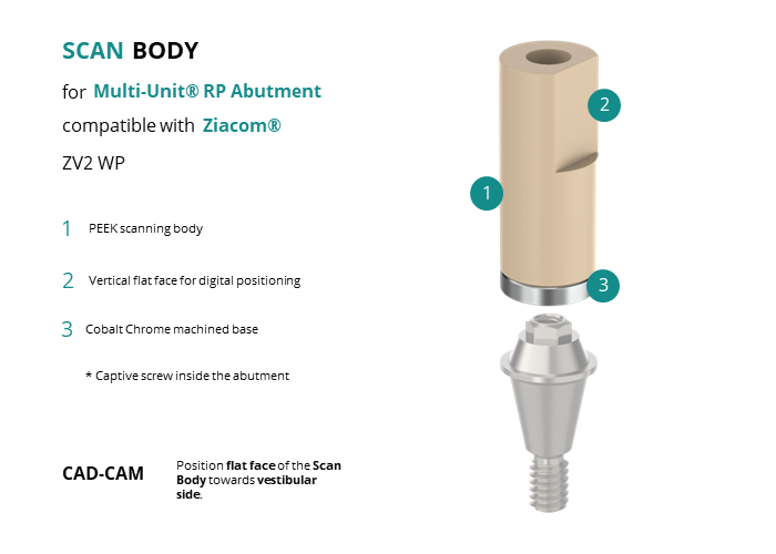 Scan Body for Multi-Unit® RP Abutment compatible with Ziacom® ZV2 WP