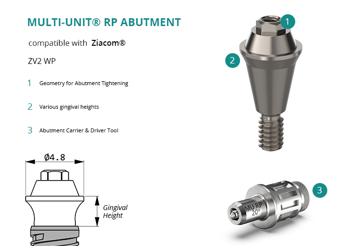 Multi-Unit® RP Abutment compatible with Ziacom® ZV2 WP
