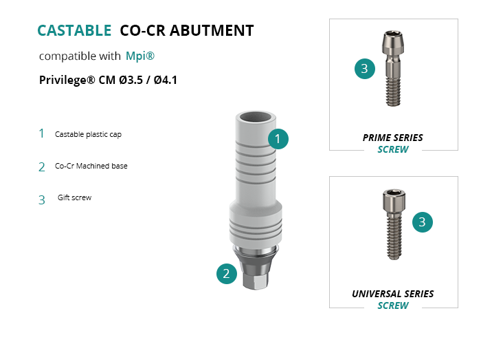 Castable Abutment with Co-Cr Base compatible with Mpi® Privilege® CM Ø3.5 / Ø4.1