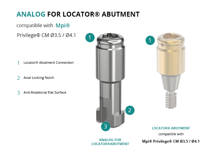 Analog for Locator® Abutment Compatible with Mpi® Privilege® CM Ø3.5 / Ø4.1