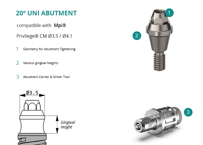 20º Uni Abutment compatible with Mpi® Privilege® CM Ø3.5 / Ø4.1