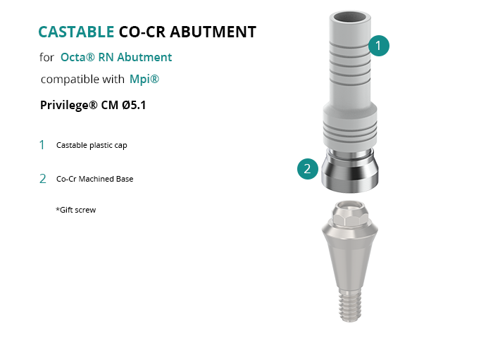 Castable Abutment with Co-Cr Base for Octa® RN Abutment compatible with Mpi® Privilege® CM Ø5.1