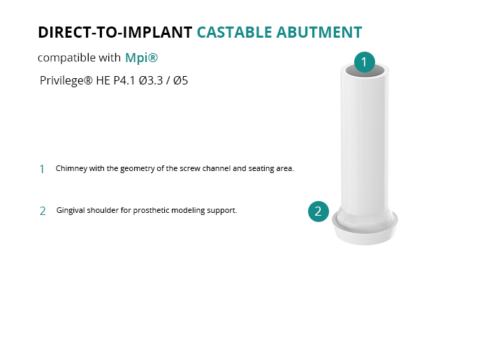 Direct-to-Implant Castable Compatible with Mpi® Privilege® HE P4.1 Ø3.3 / Ø5