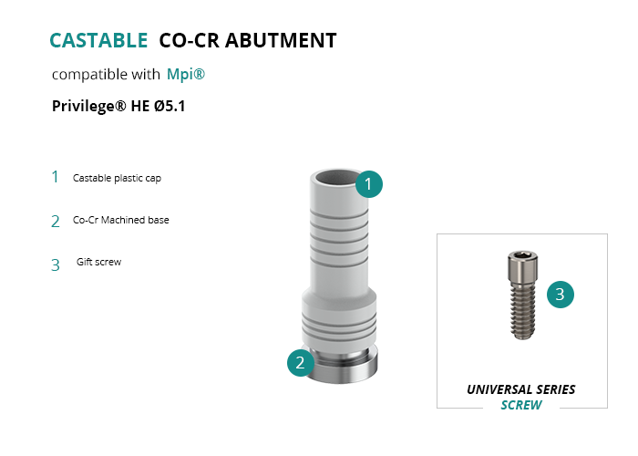 Castable Abutment with Co-Cr Base compatible with Mpi® Privilege® HE Ø5.1