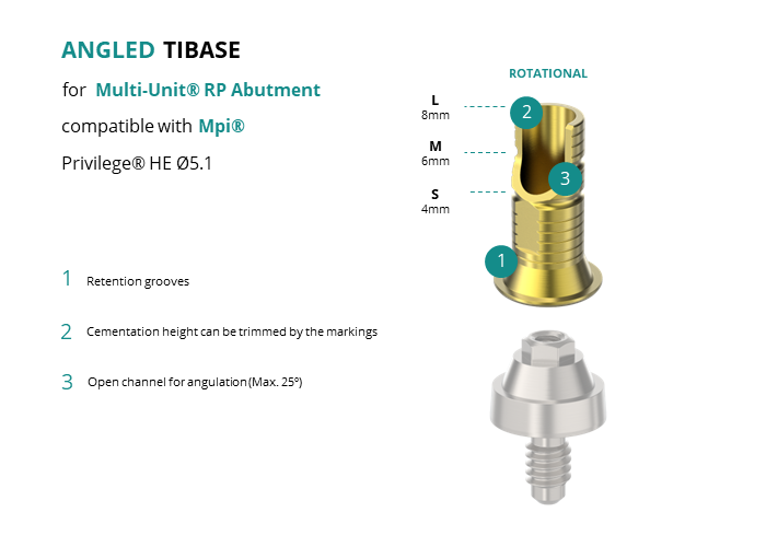 Angled Titanium Base for Multi-Unit® RP Abutment compatible with Mpi® Privilege® HE Ø5.1
