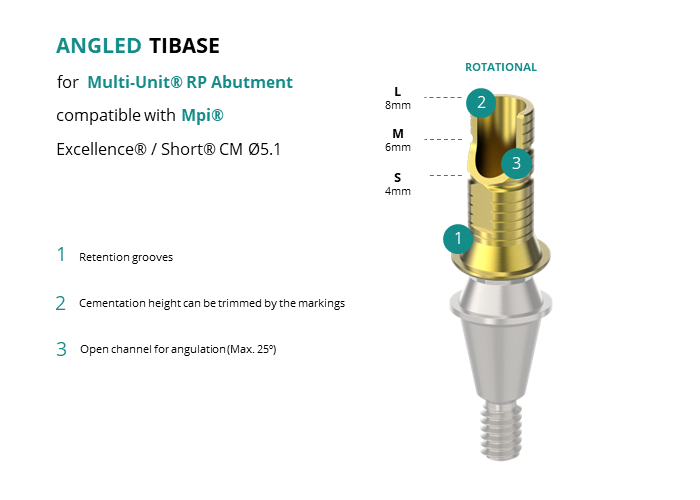 Angled Titanium Base for Multi-Unit® RP Abutment compatible with Mpi® Excellence® / Short® CM Ø5.1