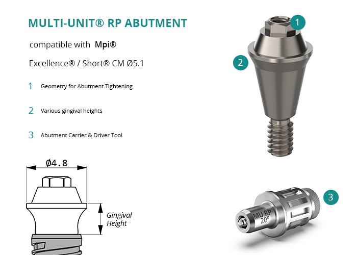 Multi-Unit® RP Abutment compatible with Mpi® Excellence® / Short® CM Ø5.1
