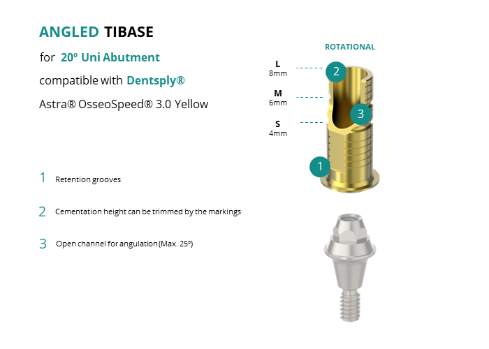 Angled Titanium Base for 20º Uni Abutment compatible with Dentsply® Astra® OsseoSpeed® 3.0 Yellow