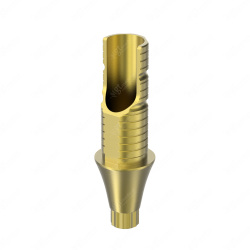 GT-Medical's Angled Ti-Base are compatible with s-Clean Narrow (010 HXI) implants from Best Fit®, ensuring a stable and long-lasting connection between the implant and the prosthesis, while also allowing angulations to be corrected up to 25 degrees. They are made entirely of Titanium Grade 5 with a yellow anodizing for a more aesthetic finish. They have a cementation trunk that can be cut to various heights with an open channel to allow angulation, 3 flat faces to perform the anti-rotating function and a gingival body of various heights, depending on the type of connection.