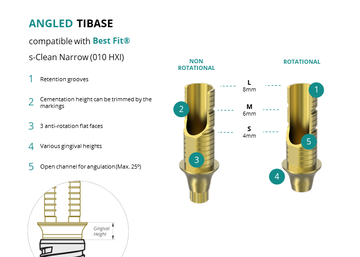 Angled Titanium Base compatible with Best Fit® s-Clean Narrow (010 HXI)