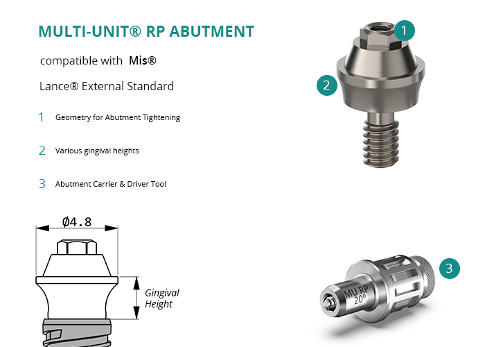 Multi-Unit® RP Abutment compatible with Mis® Lance® External Standard