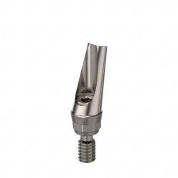 The Angled Abutment Kit consists of the Angled Abutment and screw, both made of Titanium Grade 5 with a mirror-polished finish to prevent bacterial plaque adhesion.