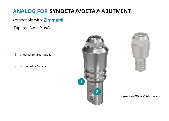 Analog for Synocta®/Octa® Abutment Compatible with Zimmer® Tapered SwissPlus®