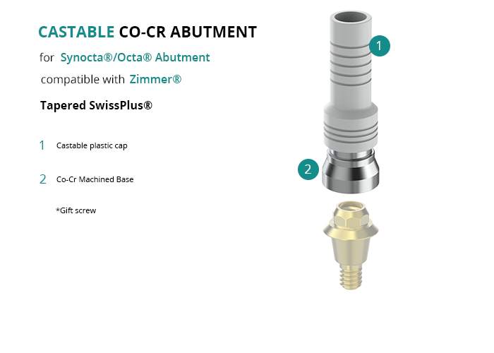 Castable Abutment with Co-Cr Base for Synocta®/Octa® Abutment compatible with Zimmer® Tapered SwissPlus®