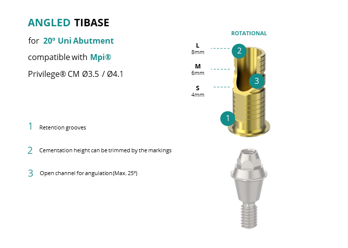 Angled Titanium Base for 20º Uni Abutment compatible with Mpi® Privilege® CM Ø3.5 / Ø4.1