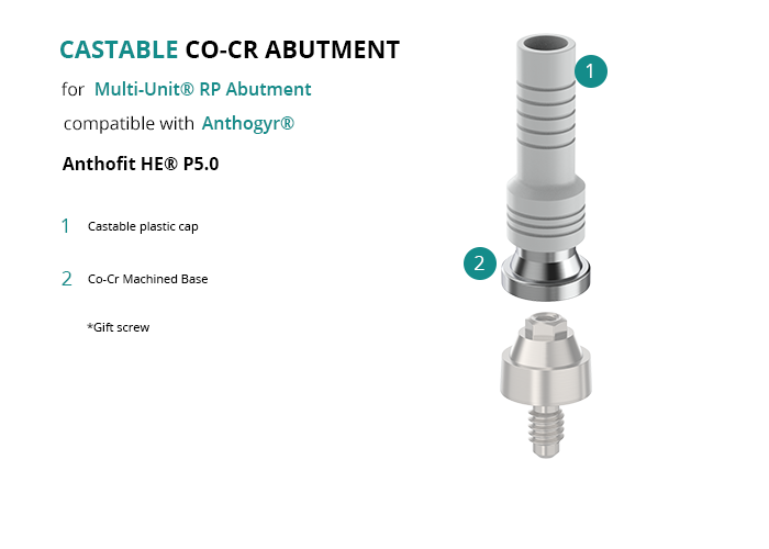 Castable Abutment with Co-Cr Base for Multi-Unit® RP Abutment compatible with Anthogyr® Anthofit HE® P5.0