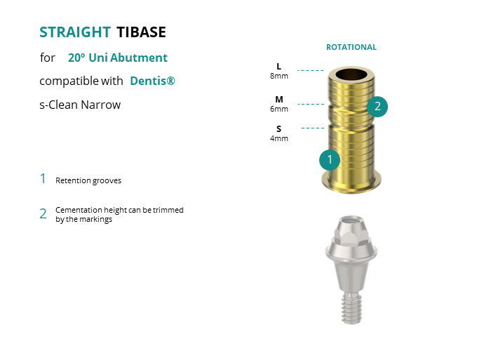 Titanium Straight Base for 20º Uni Abutment compatible with Dentis® s-Clean Narrow