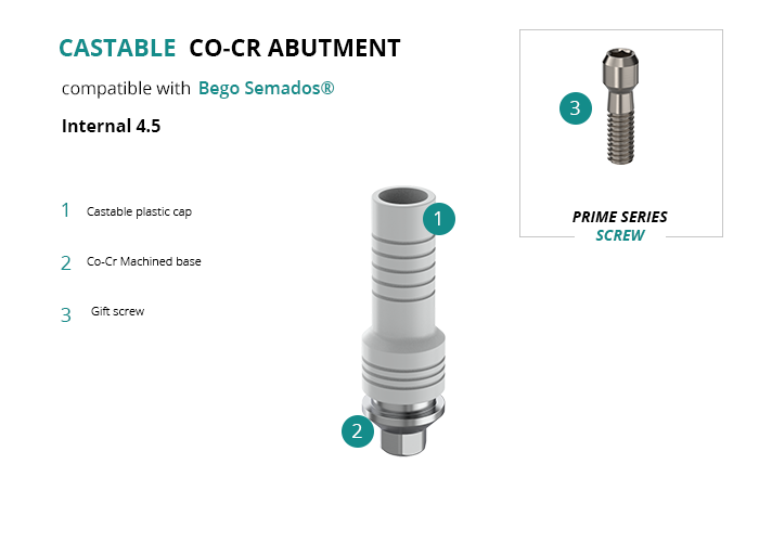 Castable Abutment with Co-Cr Base compatible with Bego Semados® Internal 4.5