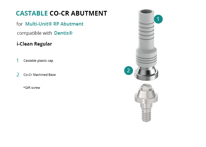 Castable Abutment with Co-Cr Base for Multi-Unit® RP Abutment compatible with Dentis® i-Clean Regular