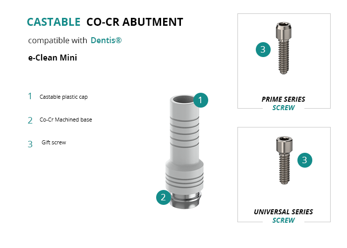 Castable Abutment with Co-Cr Base compatible with Dentis® e-Clean Mini