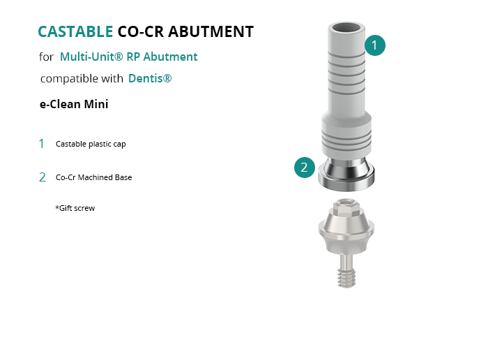 Castable Abutment with Co-Cr Base for Multi-Unit® RP Abutment compatible with Dentis® e-Clean Mini