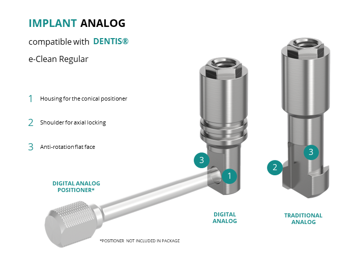 - Digital Analog: for models made of resin through 3D printing, locking is achieved using a slightly conical positioner, ensuring axial positioning.